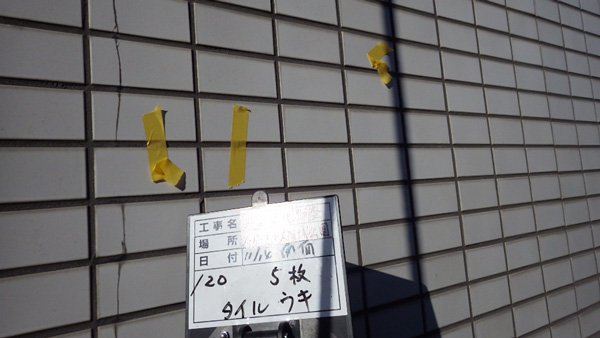 ①外壁(タイル)の剥落を起こす前の事前調査(近接目視・打診触診)